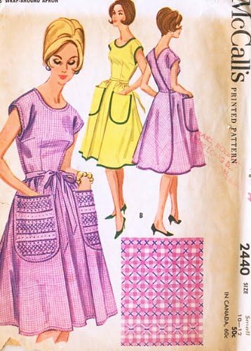 Amazon Com Mccalls 2440 Wrap Around Apron Pattern Smocking Large Pockets Size Small Bust 31 To 32 Vintage 60s